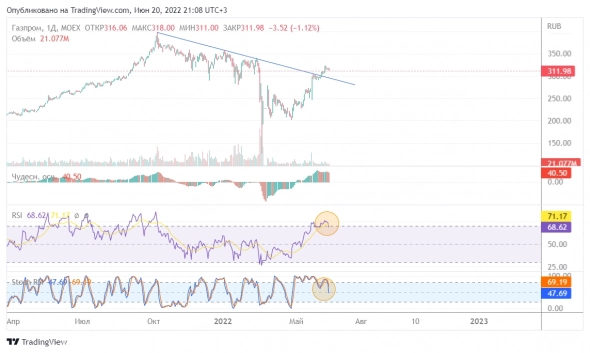 Продолжаю показывать как ведет мой индикатор на Газпроме