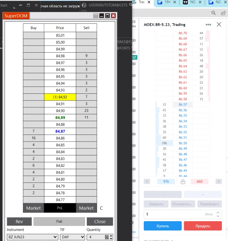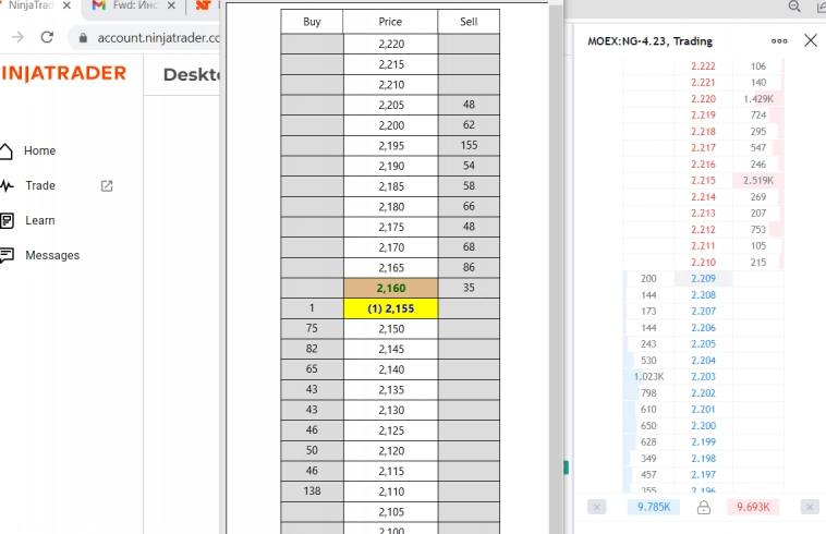 Уровень ГО в NinjiaTrader онлайн (VPN needble)