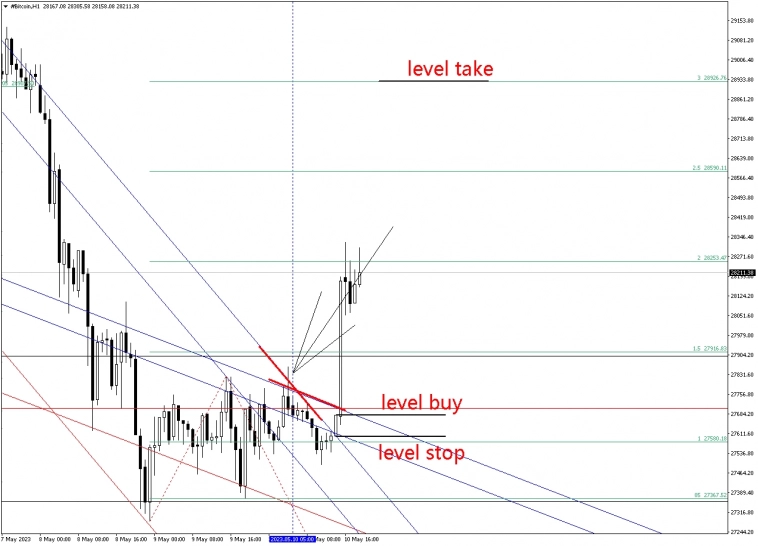 Стоп- нижний уровень свечи пробития канала. Тейк в десять раз больше стопа