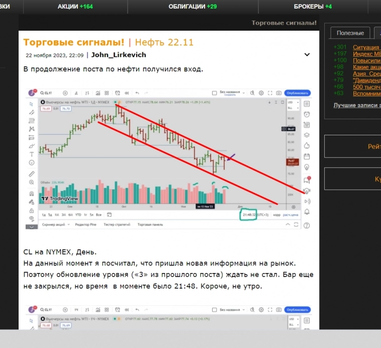 На данный момент я посчитал, что пришла новая информация на рынок. Поэтому обновление уровня («3» из прошлого поста) ждать не стал. Бар еще не закрылся, но время в моменте было 21:48. Короче, не утро.