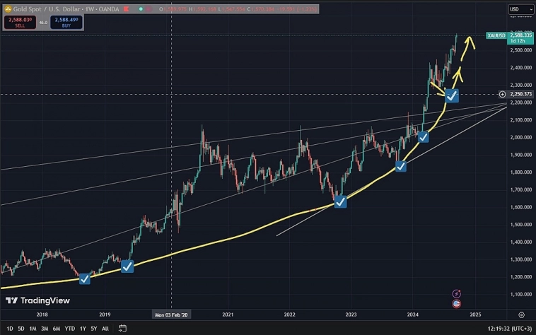 📈Золото после решения ФРС продолжает обновлять максимумы — фьюч поднялся до уровня $2592 за тройскую унцию