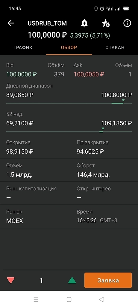 На событиях с Иосифом Пригожиным, была аномальная активность в торгах равна 450 млрд р, сегодня уже более 350 млрд, но Иосифа в новостях я сегодня не видел, а в стакане уши Иосифа вижу. Может я не те новости смотрю, но по торгам в стакане можно сказать идут панические покупки, которые никто по нормальному не осаждает. Прям напоминает ситуацию с 01.03.22. Да тогда оборот торгов был 1,5 млрд долларов в ТОМ на 16-30, а у нас пока только чуть менее 1,0 млрд: