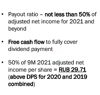 Что более важно, вклад первых девяти месяцев в дивиденды «Газпрома» составил 29,7 рубля на акцию, что соответствует 8,9% доходности. Полагаем, что при такой динамике финансовых результатов и цен на газ, дивиденд по итогам года может составить около 45 руб. на акцию, а доходность достигнет 13,5%. Однако достаточно скромный перформанс показывает свободный денежный поток, который снизился на 9,6% г/г, преимущественно из-за роста капитальных затрат и негативных изменений в оборотном капитале.