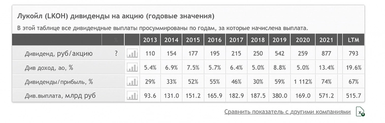 Если прошлую дивдоходность смотреть, то Лукойл никогда и не платил много (5-8%), но стабильно и каждый год старался увеличивать.
