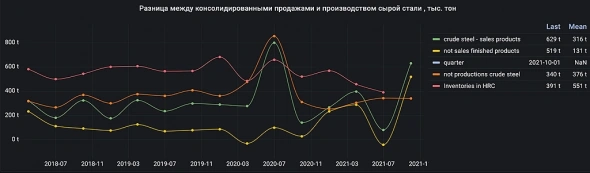 Всем привет, основные основные показатели влияющие на EBITDA, это продажи по основным категориям стальной продукции и консолидированная цены на металлопродукцию. Соответственно возьмем из результата и подставим в расчет из нашего прогноза