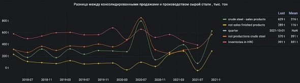 RUNNER070, Я же давал график, производство стали мало как связана с продажами. В 3-ем квартале 2020-го года было так же перепроизводство стали, которое не вылилось никак в увеличение производства готовой продукции и соответственно продажам.