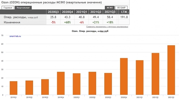 Также мы теперь точно знаем, сколько стоит «озон-зон-зон» и «ручки-загребучки» из каждого утюга — рекламные расходы подскочили с 6,5 млрд в 2020 до 16 млрд за 9 месяцев 2021 года.