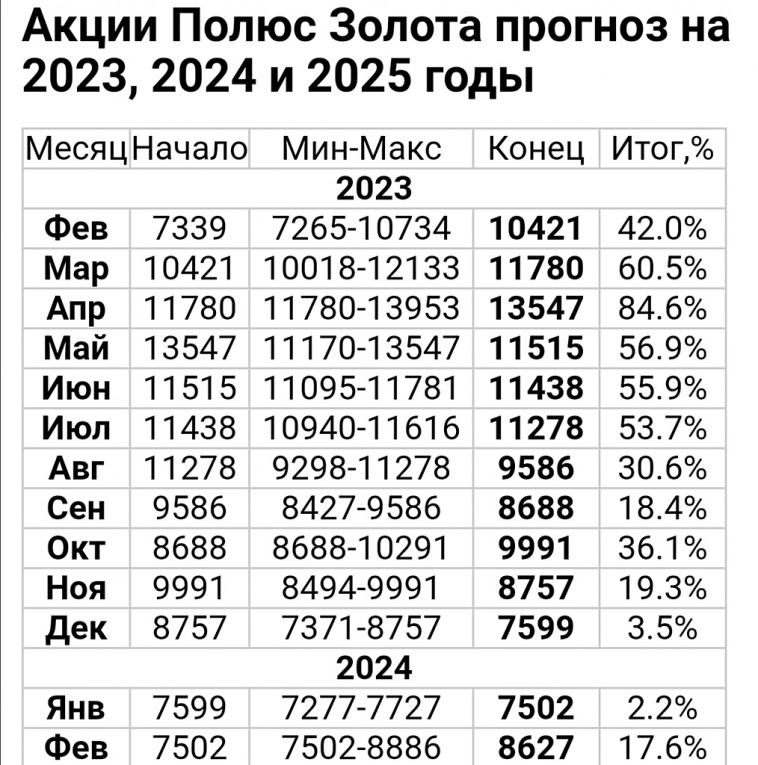 После реализации прошлого прогноза (https://t.me/fund_ka/2473)по Полюсу можно сказать, что у компании остаются не менее интересные перспективы для покорения новых вершин. В настоящее время Полюс Золото находится в лидерах роста на фоне позитивной динамики золота и в дальнейшем не должен ощущать каких-либо проблем с денежными потоками. В 2023 году золото продолжит расти, а следовательно будет расти и стоимость акций компании.