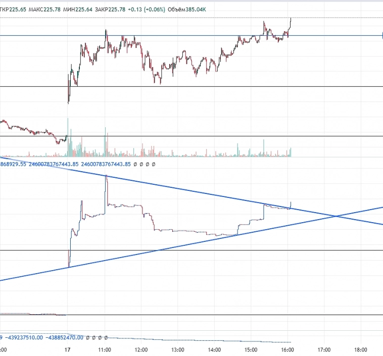 Корзин Помойкович, я думаю что то может и готовится но возможно не на сегодня. 223.50 моя цена покупки внутри дня а завтра уже другой день т...