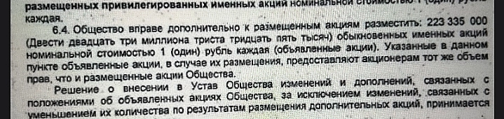 Это Устав от 18 года — на фото. А изменения в отношении десятикратного размытия обычки и преф были приняты и утверждены только ...