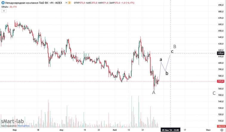 — пробой с тестом сверху трендовой (603,4 на сегодня)