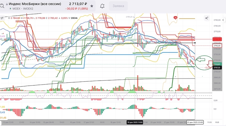 Это значит ММВБ летит камнем вниз на 2700 и чуток пониже — в район 2650