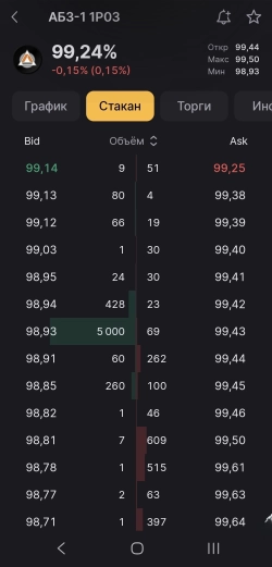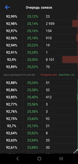 Смотрим как выгдлядит в у вас в приложении стакан котировок