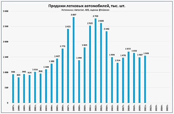 Я вижу что продажи новых авто в РФ (не в состоянии начала СВО и ухода автобрендов) в 1-1,5 млн штук — это база, либо более 1,5 если год хороший. Из них известный российский автопроизводитель с большой буквы А, >продолжение ниже<