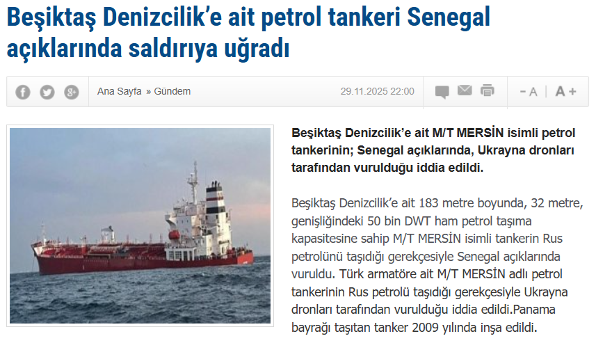 «Судно не запрашивает помощь. Судно с работающими двигателями следует в направлении Синопа», — говорится в сообщении.