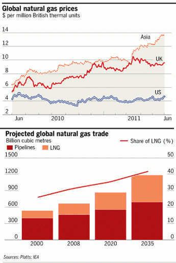 Трейдеры были потрясены недавним внезапным скачком цен на газ когда стало известно, что Вашингтон готовит почву чтобы начать экспортировать СПГ и стабилизировать впавшие в депрессию цены на газ до уровня других стран. Экспортер проекта компания Ченьер энергии отмечает большой шаг на пути глобализации рынка газа и, что это сделает США конкурентом таких стран как Россия и Катар.