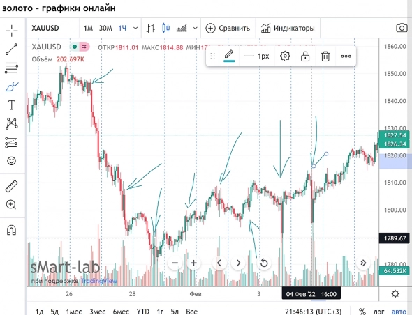 Вадим Рахаев, не знаю, насколько это поможет прояснить ситуацию, но, похоже, сейчас на цену золота влияет одновременно большое количество взаимно противоположных факторов, новости по которым очень быстро меняются. Для примера, статья от 04.02.2022 ( profitov.net/investory-begut-v-zoloto-imperija-meta-ruhnula-dollar-letit-vniz/ )