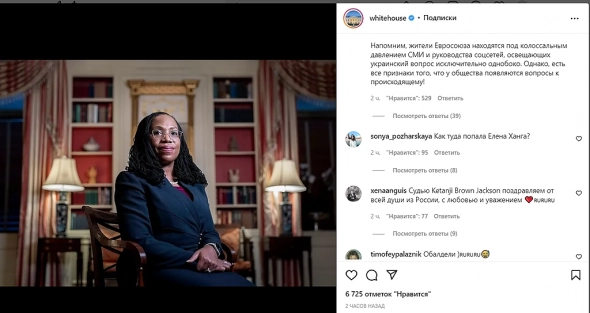 Россияне атаковали «Инстаграм» Белого дома устроили флешмоб. Комментарии на русском языке под постами с цитатами президента США Джо Байдена и сотрудников американского правительства начали появляться в начале марта. Сейчас поток высказываний от россиян почти непрерывен, а высказывания на английском языке появляются лишь изредка.