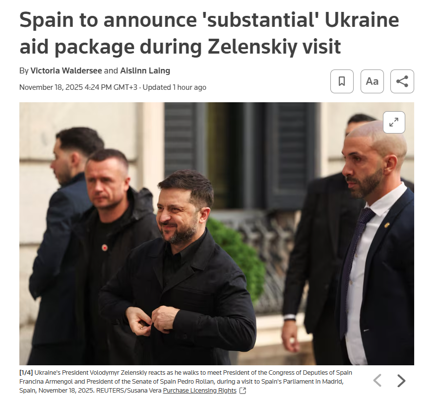 «Мы в Испании выступаем за то, чтобы максимально увеличить финансирование Украины...» — сказал министр экономики страны Карлос Куэрпо в интервью Bloomberg TV. «Мы выступаем за то, чтобы найти творческие способы использования этих замороженных активов».