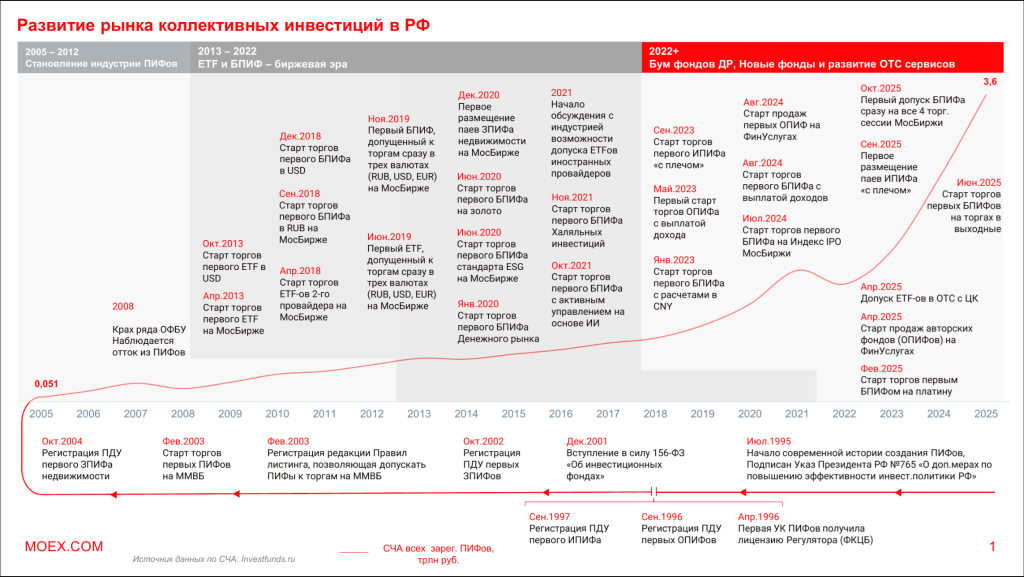 1. Объем ПИФов: с 2023 года началась золотая эра коллективных инвестиций, отсюда куча разных фондов, пифов, авторских стратегий, прирост в ~3 раза, но половина объёма занимают фонды денежного рынка (аналог депозитов), ещё треть облигации, т.е. мышление вкладчиков сохраняется и на бирже — кто первый понял (втб с lqdt), то в шоколаде.