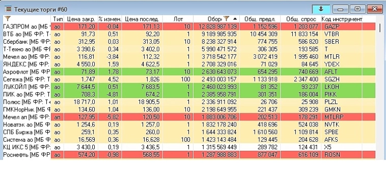 Доброго дня! Подскажите, есть какие-то визуальные разделители, которые можно вставить между инструментами в таблице «Текущие торги». А то несколько таблиц создавать не хочется