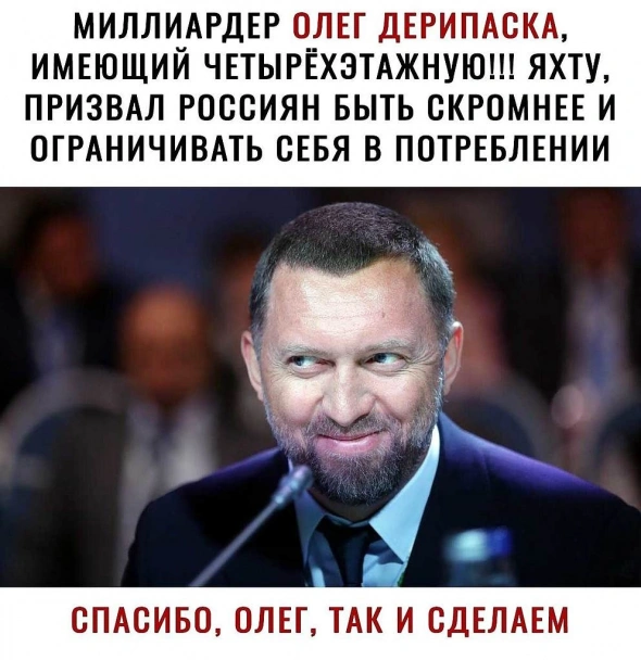 «Безусловно, нужно будет менять схему потребления, мы не можем столько потреблять, столько выбрасывать — нужно от чего-то отказываться. Об этом тоже никто не говорит. Все говорят о наращивании доходов, о стимулировании потребления. Но нужно от многих вещей отказываться — это единственный путь достижения равновесия" © Дерипаска