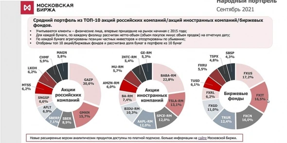 Народный портфель за сентябрь 2021г. Российские акции, акции иностранных компаний, биржевые фонды.