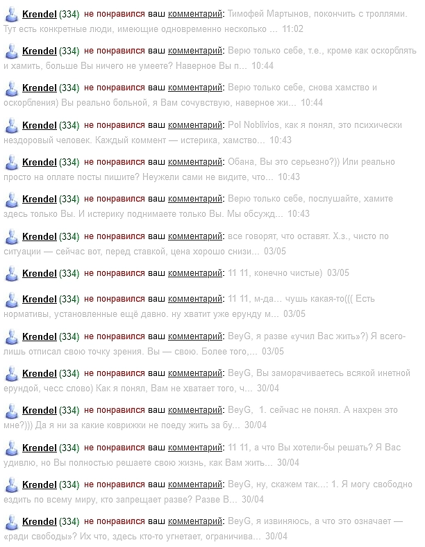 фортс, пришлите ссылки на комментарии с минусами от этого юзера.