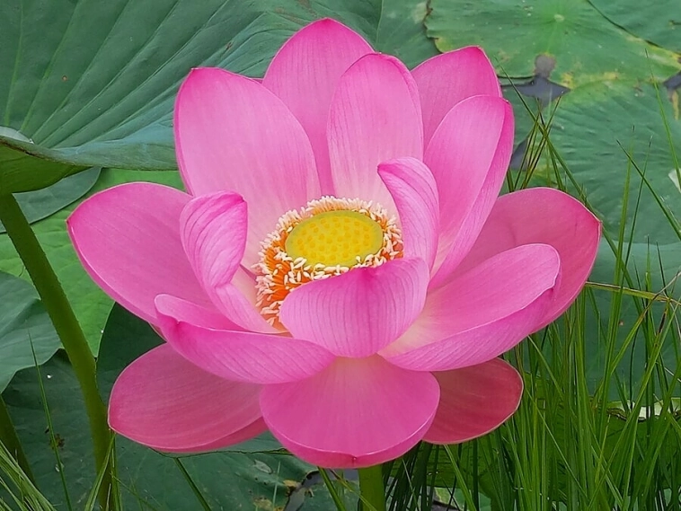 Корень лотоса иногда достигает 300 метров (!), сам цветок – до 30 см, листья – до 100 см. Интересно то, что его огромные листья имеют восковый налет, благодаря чему водою они не смачиваются, и не мараются грязью. От цветов исходит нежный запах. Они всегда обращены к солнцу, поворачиваясь вслед за его движением. На ночь цветок сворачивается в бутон и каждое утро раскрывается вновь. Цветет около месяца, со второй половины июля до начала сентября. Отдельные цветки могут цвести до середины сентября. В это же время в цветоложе созревают семена по 20-35 орешков в каждом. По этой причине его иногда относят к виду орехоносного лотоса. Семена лотоса очень жизнестойки. В неблагоприятных случаях они впадают в анабиоз, и могут так пролежать очень продолжительное время, пока не попадут в благоприятную почву. Бывали случаи, когда удавалась прорастить семена лотоса, которым было более 1000 лет...
